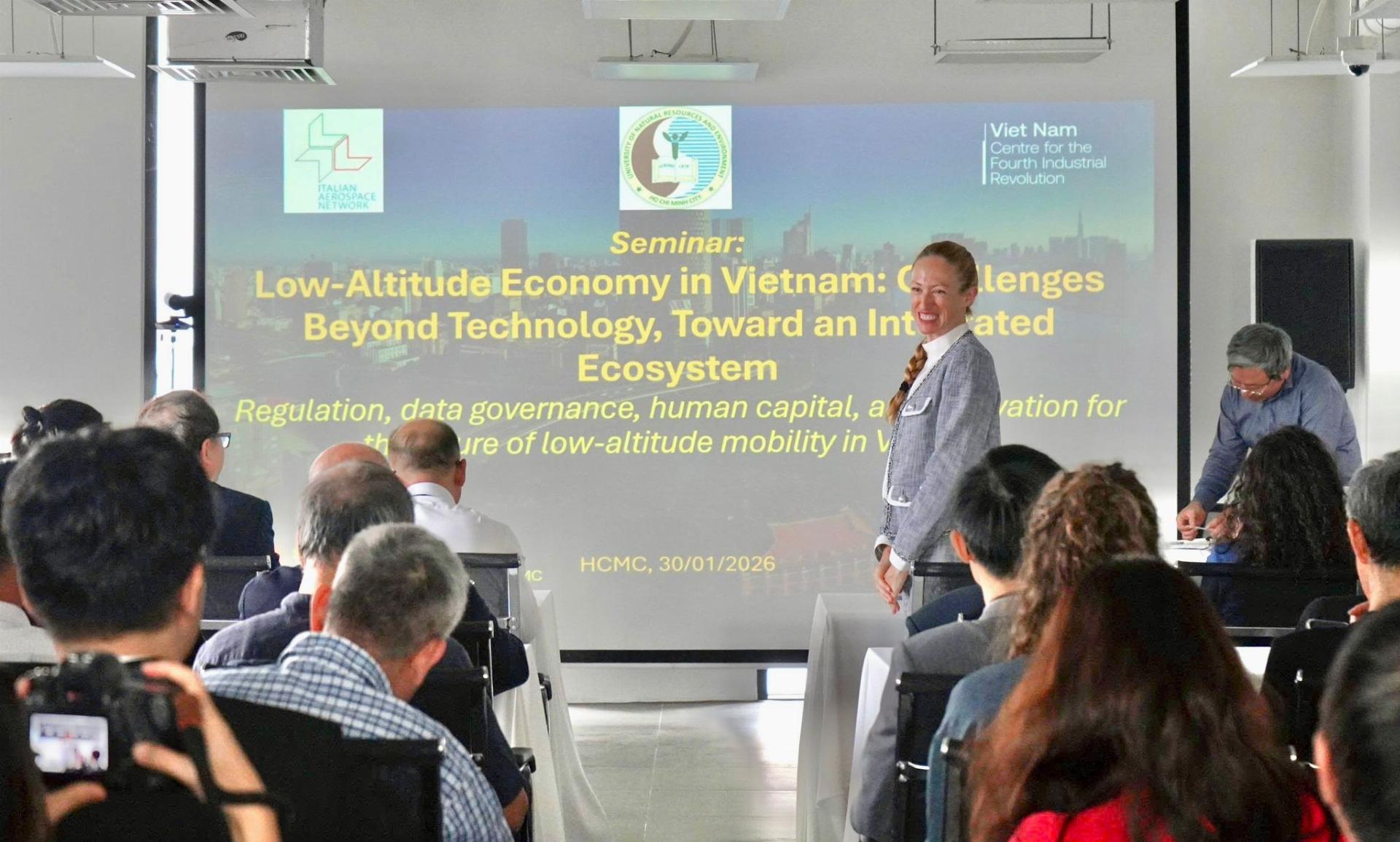 Si è svolto il 30 gennaio 2026 presso la Ho Chi Minh City University of Natural Resources and Environment il seminario bilaterale Italia–Vietnam “Low-Altitude Economy in Vietnam: Challenges Beyond Technology, Toward an Integrated Ecosystem”, focalizzato sulle opportunità di accesso al mercato vietnamita per le PMI italiane attive nei servizi e nelle infrastrutture del settore. L’iniziativa, organizzata in collaborazione con il Consolato generale d’Italia a Ho Chi Minh City, l’Italian Aerospace Network e il Centro per la Quarta Rivoluzione Industriale (HCMC–C4IR), fa seguito al Forum bilaterale Italia–Vietnam su Space Innovation dello scorso dicembre, che ha aperto la strada al dialogo sull’estensione della cooperazione dallo spazio alle applicazioni aeree a bassa quota.